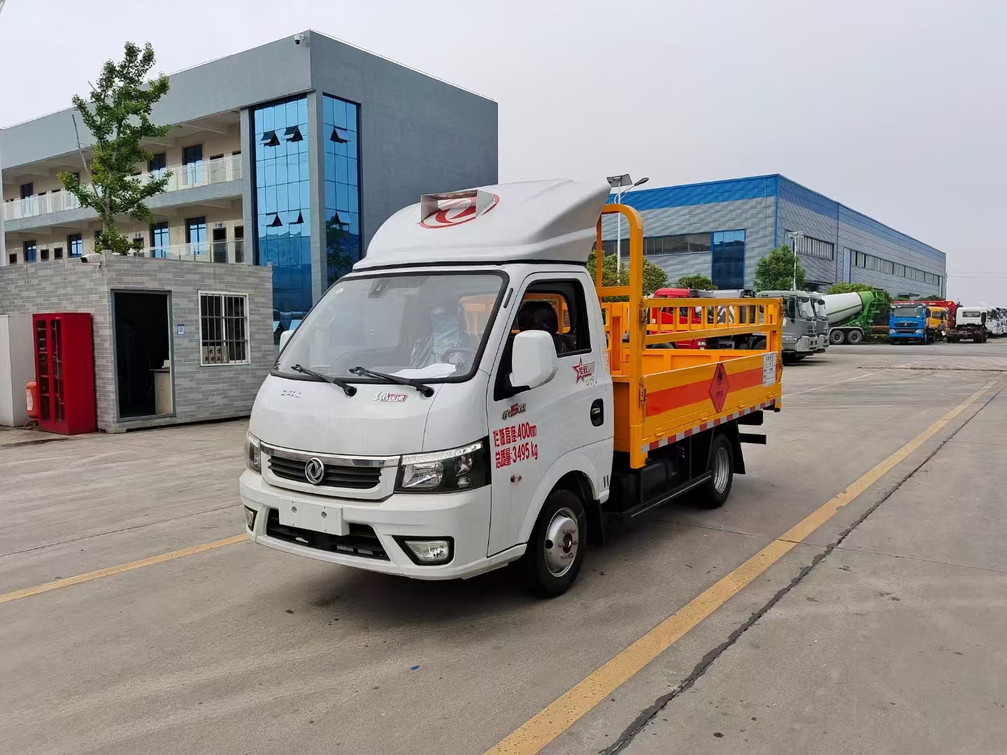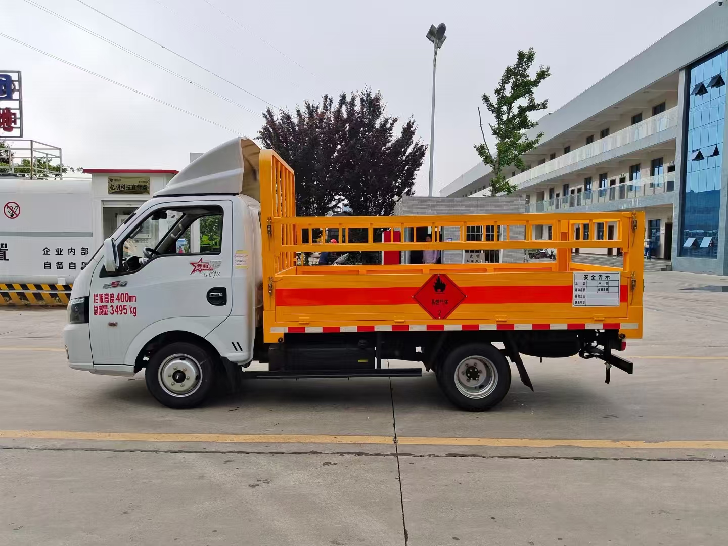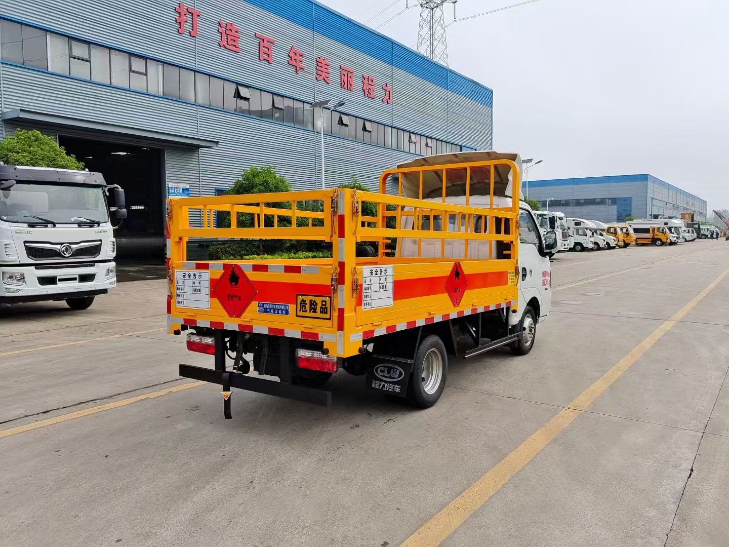 | 上裝配置 | 欄板可選裝高欄或者低欄,底板為3mm板材,底板上鋪有靜電膠皮,有靜電帶、滅火器、防火罩。整車國標(biāo)反光標(biāo)示及警告標(biāo)志。 | ||